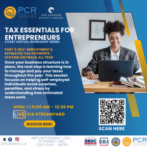 Tax Essentials for Entrepreneurs: A 2-Part Workshop Series Starting a business is exciting but staying compliant, tax-smart, and financially confident is what helps it last. In partnership with the Los Angeles Public Library, this two-part workshop series is designed for entrepreneurs, freelancers, and small business owners who want to build a strong foundation and stay in control of their taxes all year long. Together, these sessions walk you through the full tax journey of a business owner from choosing the…
