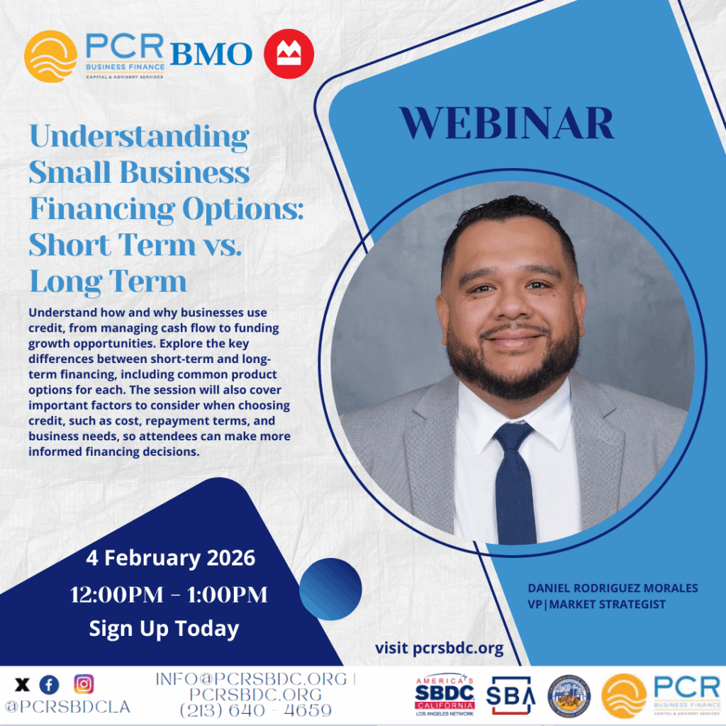 Being financially fit is one of the most essential components of sustaining a business. Business owners know they need financial support but do not always know where or how to establish resources. In our “Take That To The Bank” special event, entrepreneurs will have the opportunity to hear directly from bankers and financial professionals who can explain the ins and outs of funding opportunities for their business. Special guests include: Karen A. Clark – Senior Vice President of City National Bank, O.C. Issac – Senior Vice President/ Chief Credit Officer of Pacific Coast Regional and Leonard Tanguay – Core Business and Financial Consultant of PCR SBDC. If you are looking for some banking insights this is not an event you want to miss, Sign Up TODAY!
